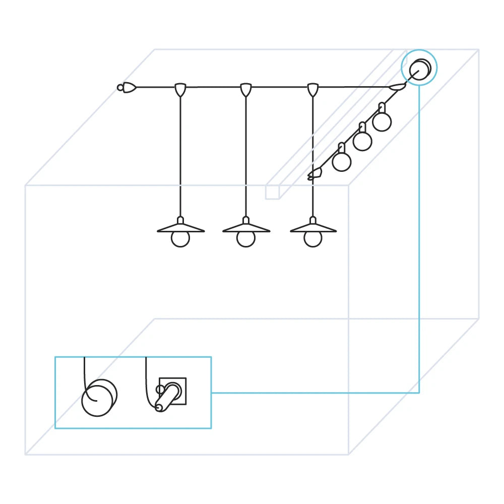 Stelle deine Anlage zusammen, indem du Kabel, Lampenfassungen und Zubehör passend für jeden Raum auswählst.