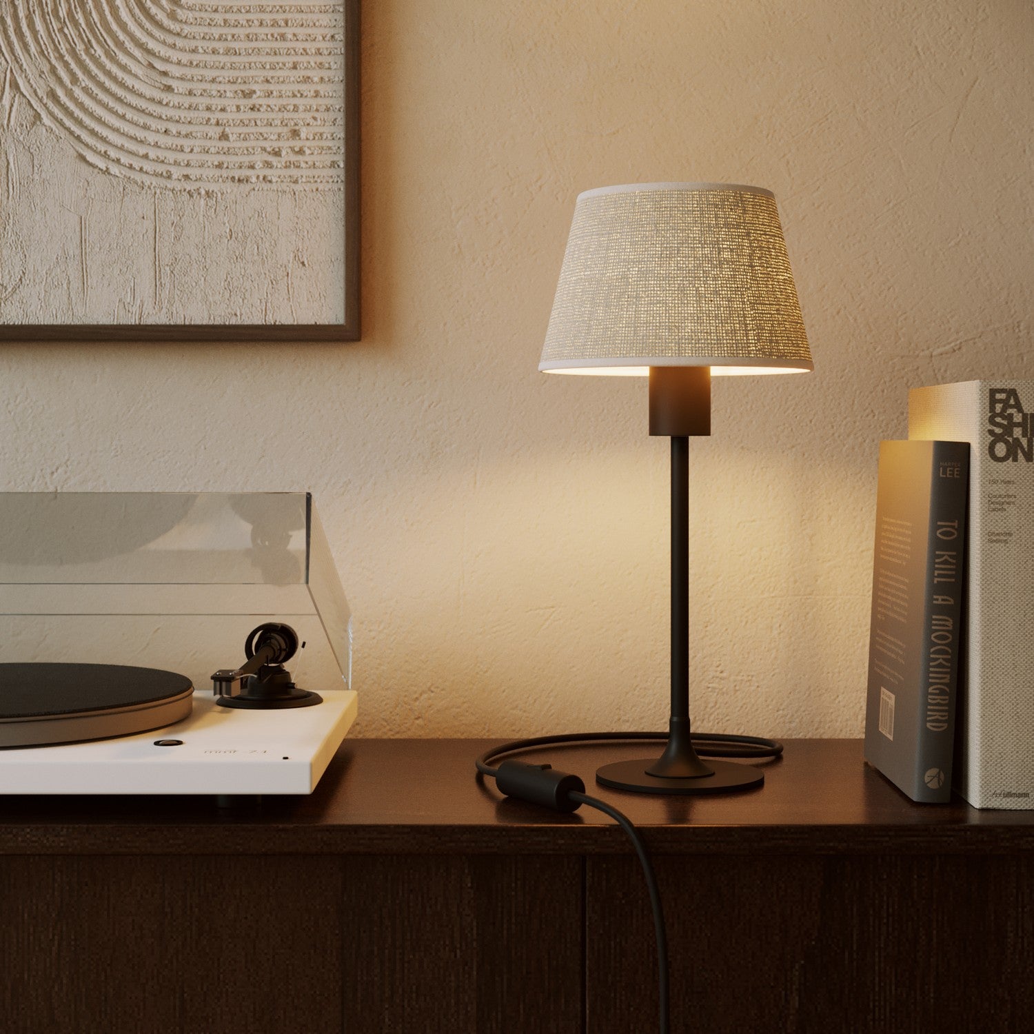 Vervollständige den Lampenschirm mit Zubehör, Glühbirnen und Creative-Cables Textilkabeln, um eine Tisch- oder Wandleuchte zu gestalten, die Funktionalität mit natürlichem Stil vereint.